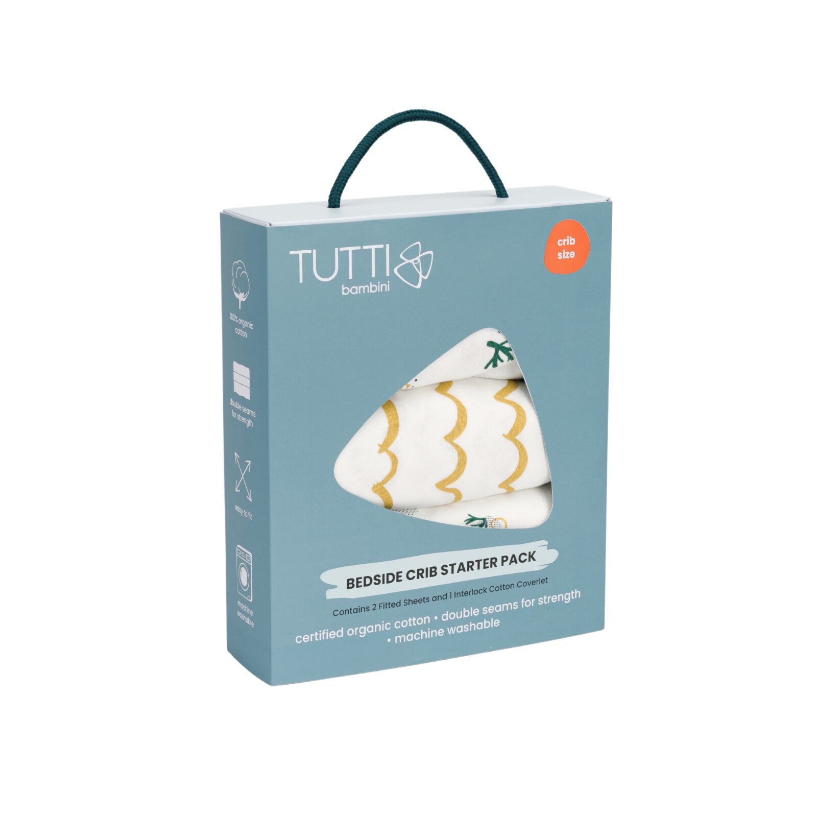 What’s Included: Two crib fitted sheets, suitable for all CoZee cribs, and an interlock coverlet
