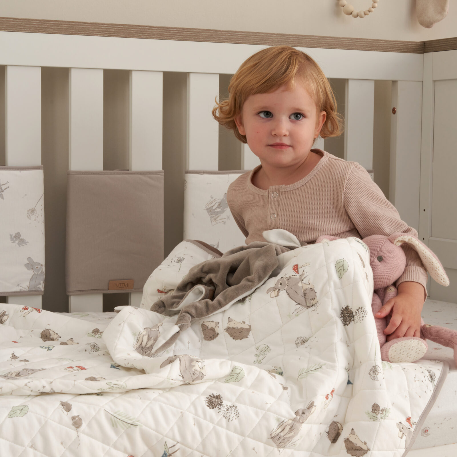 Providing a timeless and nostalgic feel, the Cocoon collection is a modern classic designed to complement your home through its natural colour palette and cosy woodland motifs. Our Cocoon cot and cot bed coverlets are quilted and beautifully designed with illustrative frolicking bunnies to carry on the aesthetic of the collection. Mix and match with other items to get the full look.