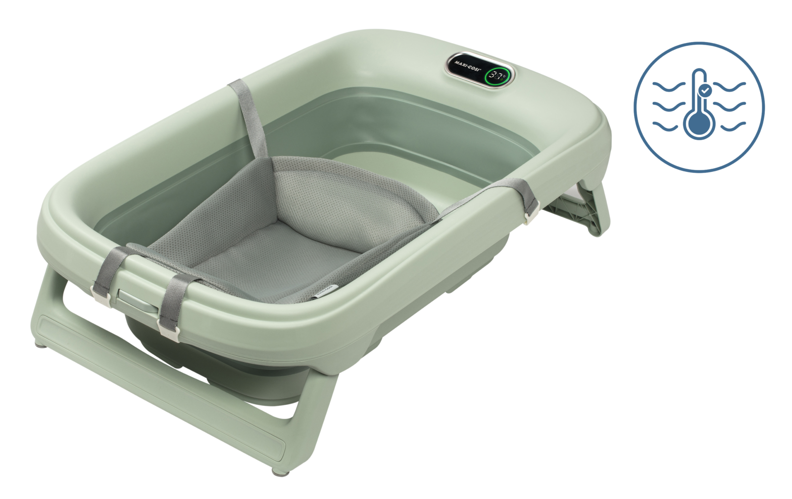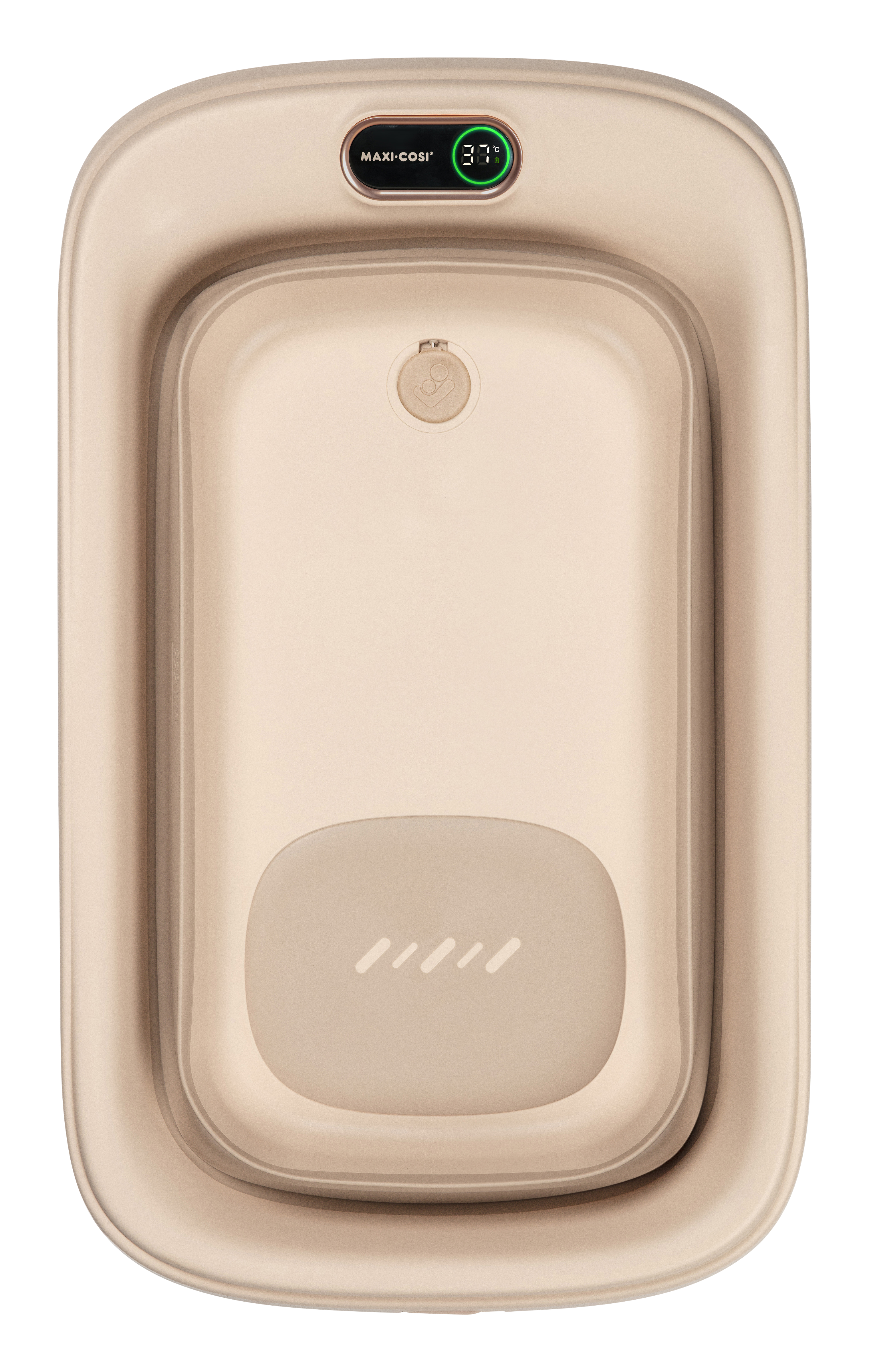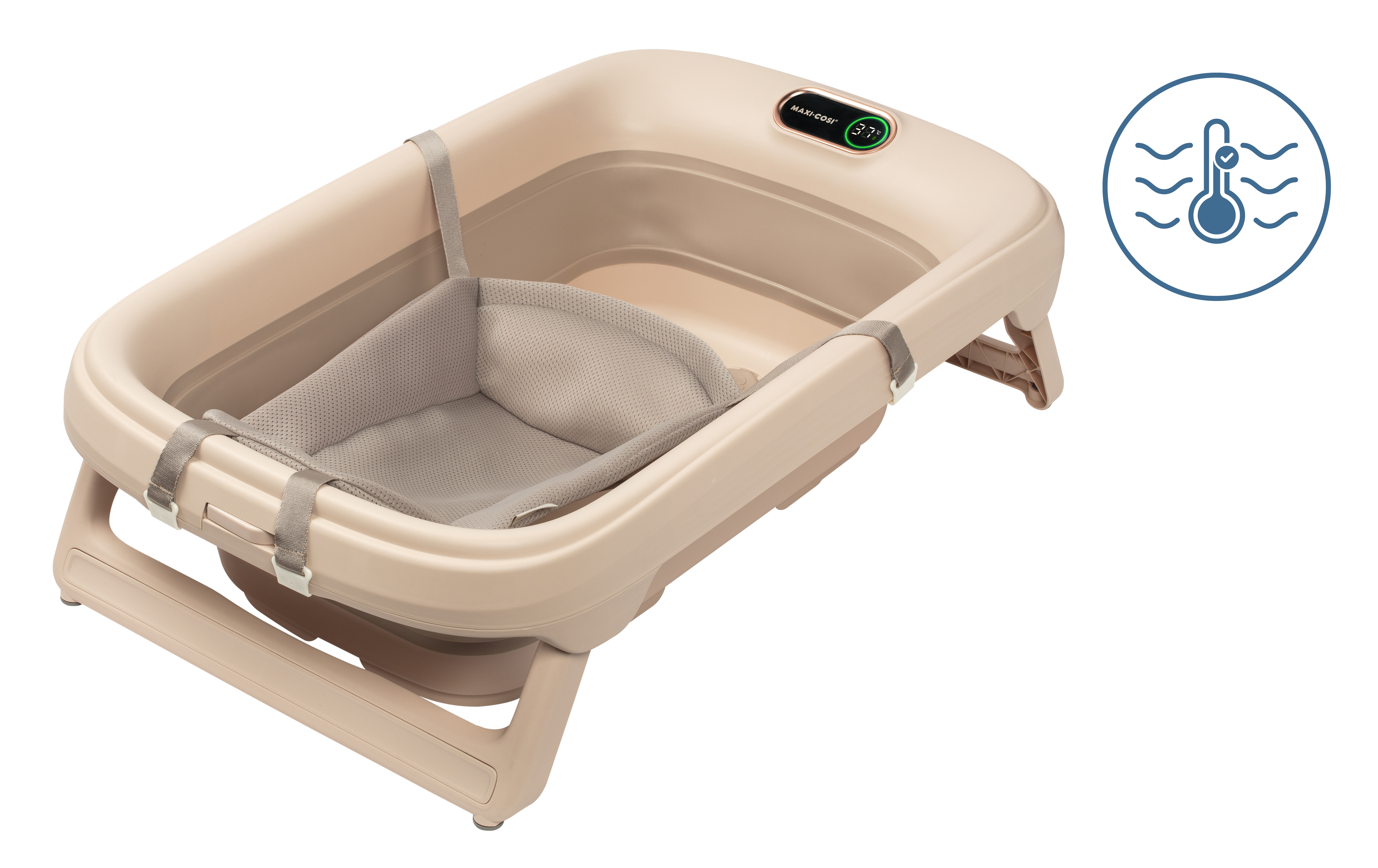 Built-in HighSense thermometer | QuickDry newborn insert | Comfort and safety | Easy bath, easy drain, easy store