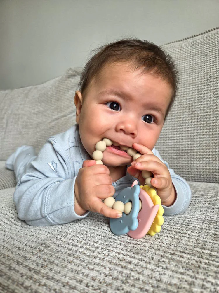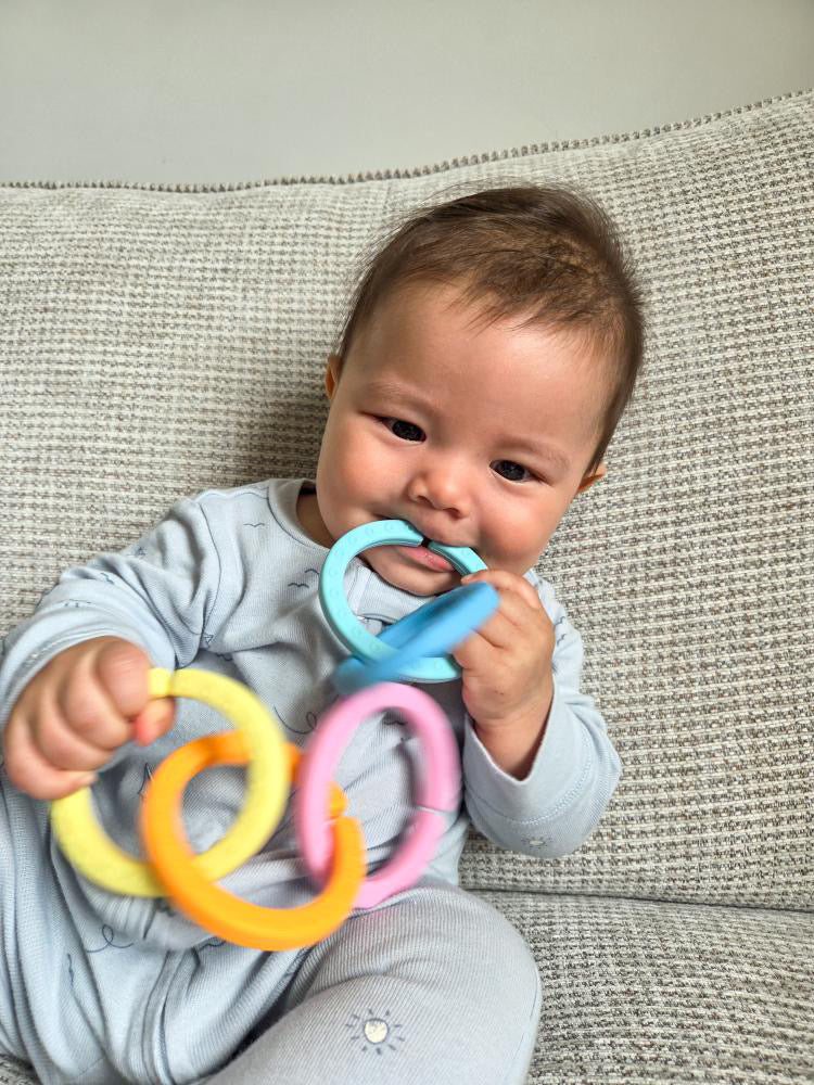 🦷Teething Ring – soft, textured and soothing for sore gums. Ideal for sensory exploration, mouthing, and shared play moments – all great foundations for early language development.