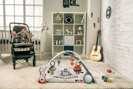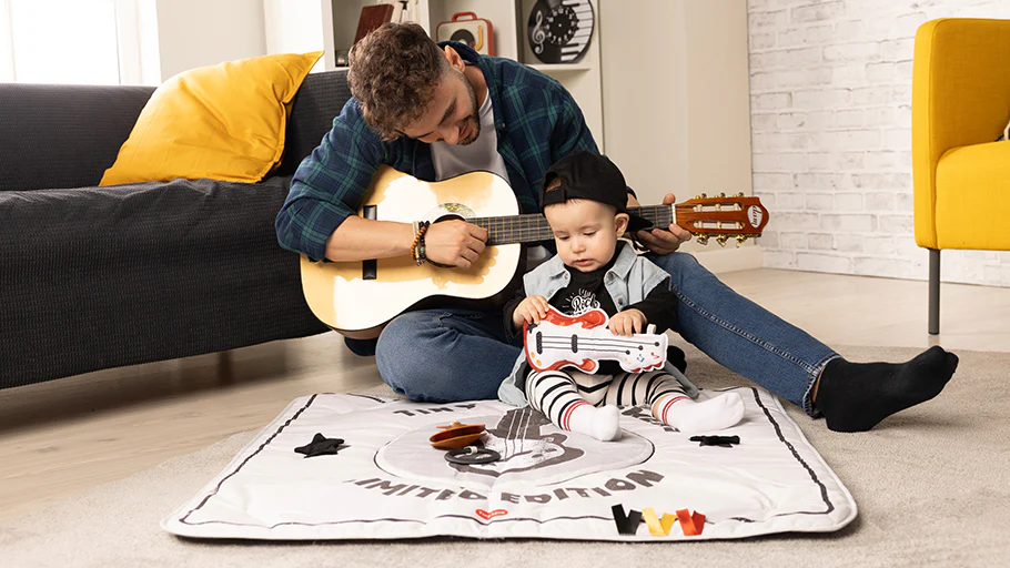 Inspired by all things rock ‘n’ roll, a musical genre that perfectly captures the vibrant, energetic, and occasionally rebellious spirit of little people, this is the perfect choice for music lovers and their little rockstars.