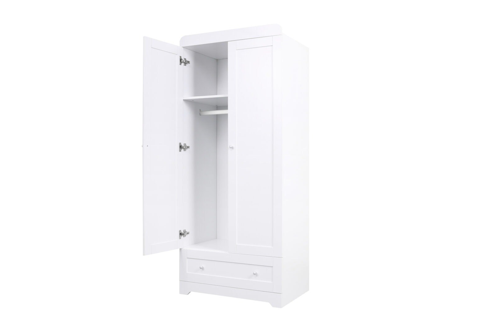 The Tutti Bambini Rio Wardrobe is the perfect addition to your nursery complementing both the Rio and Malmo Cot Beds. With a full width drawer, hanging rail and shelf, the Rio wardrobe has plenty of room for all your baby essentials.