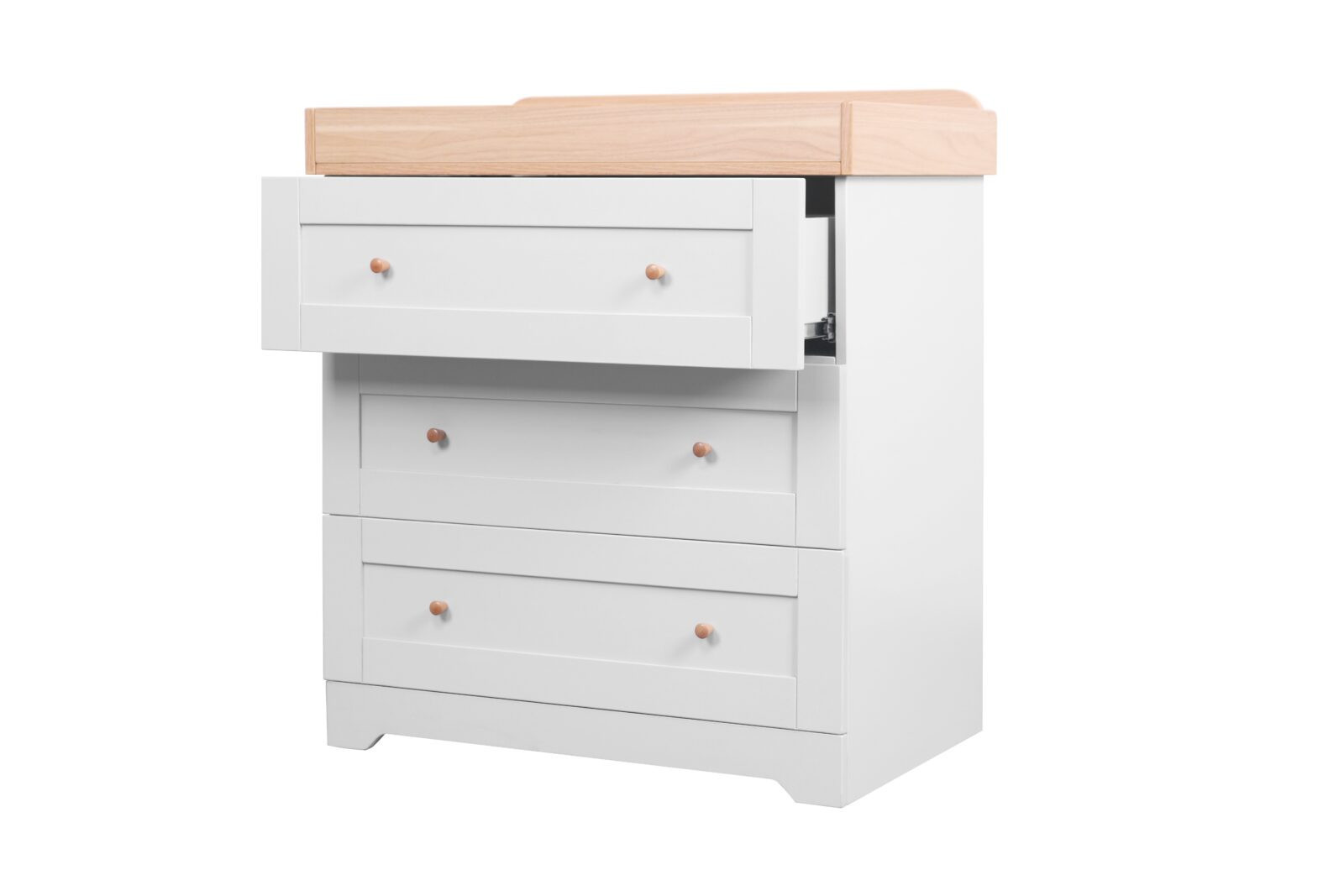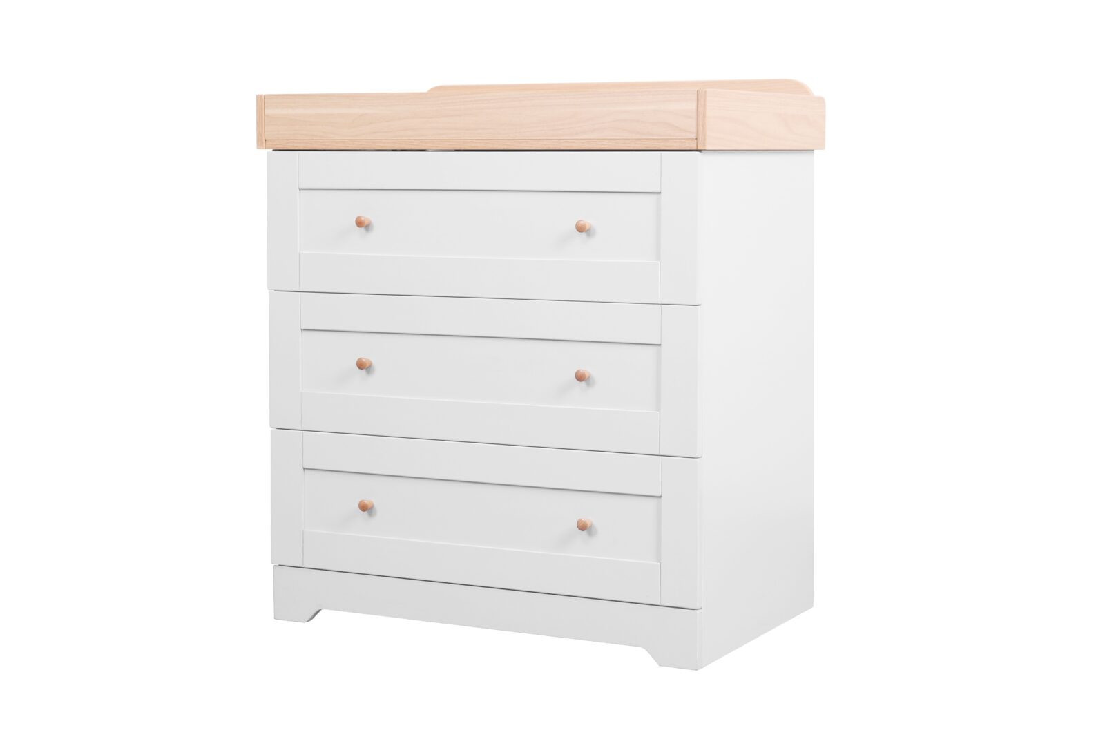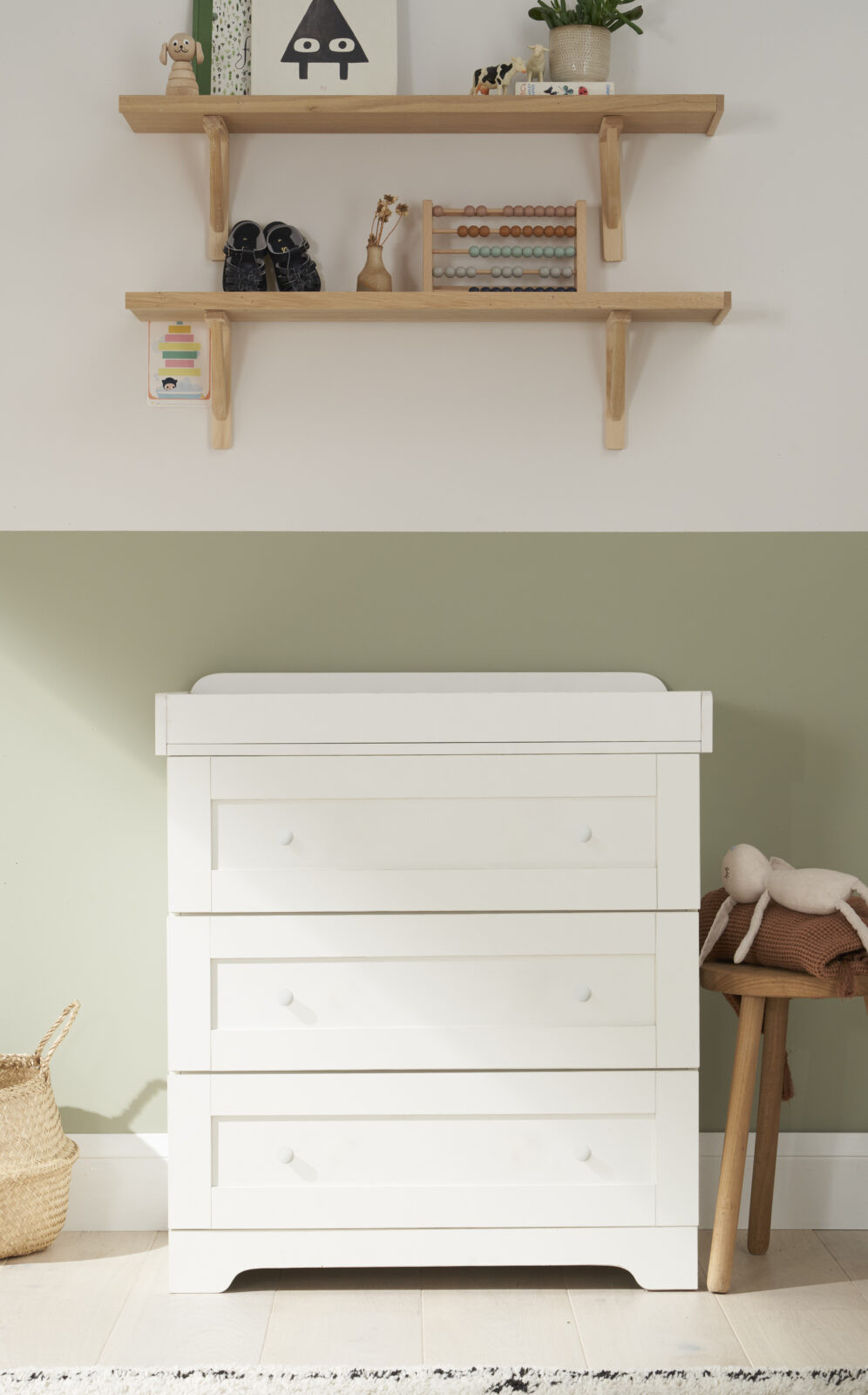 With three generous drawers and a contemporary feel, this Rio Chest Changer offers you the perfect storage solution whilst providing a safe place to change your baby.