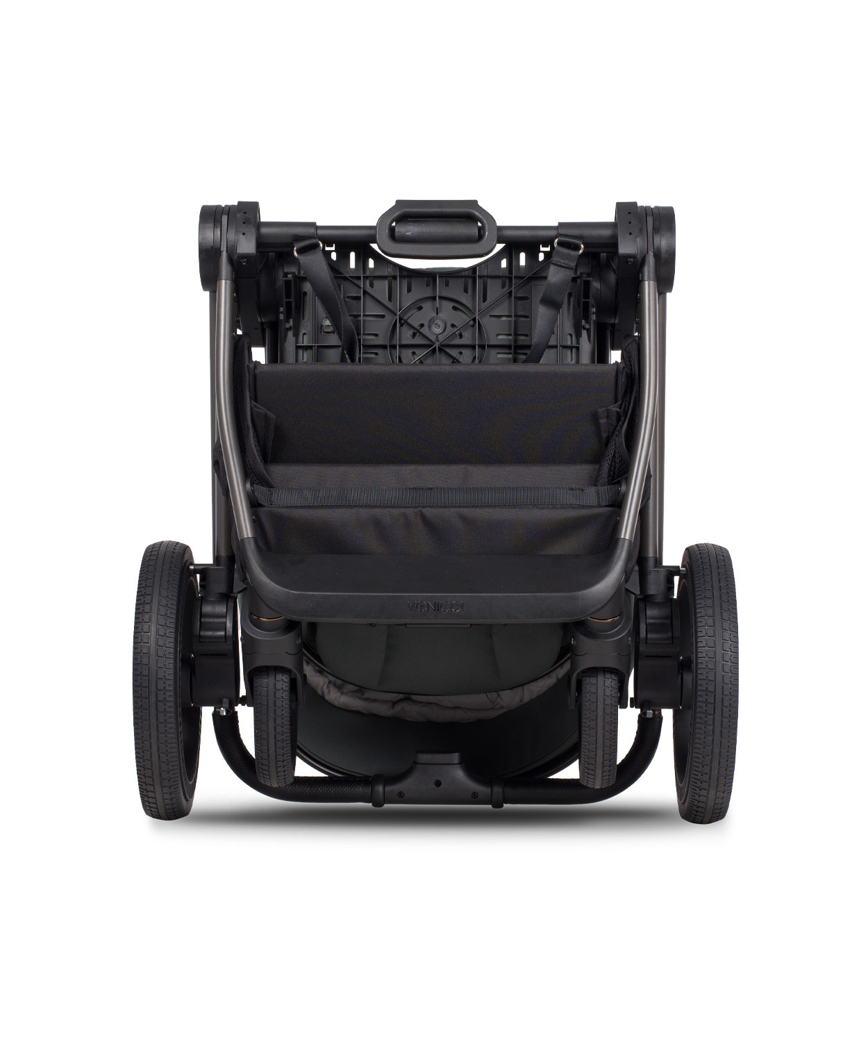 With the Venicci Upline 2, folding the pram becomes a pleasure. A quick motion of the hand is all it takes to fold the frame and get it ready for transport. Thanks to the special strap mounted on the chassis, you can conveniently carry the pram over your shoulder with ease. The chassis weighs only 5.9 kilograms and is made of lightweight yet durable aluminium, resistant to damage. You can easily fit it into the boot, even of the smallest car.